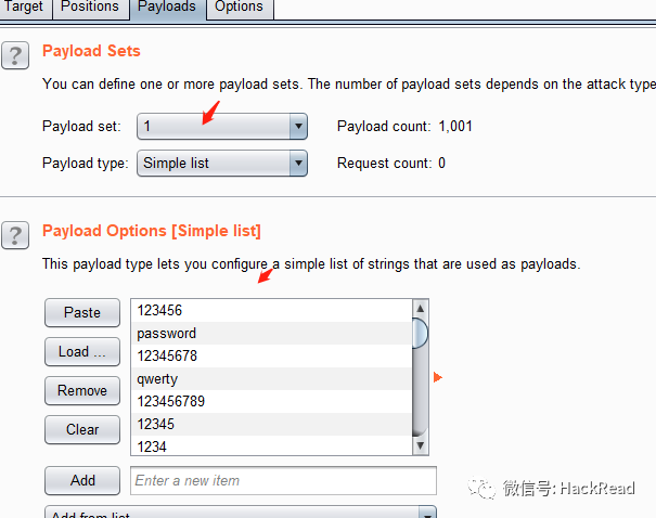 payload 1 使用“自定义迭代器(Custom interator)”。并在迭代器中组合用户名和密码。