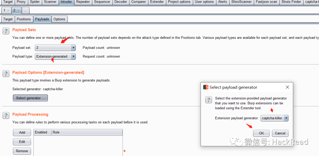 payload 2 选择“Extension-Generated”–captcha-killer插件
