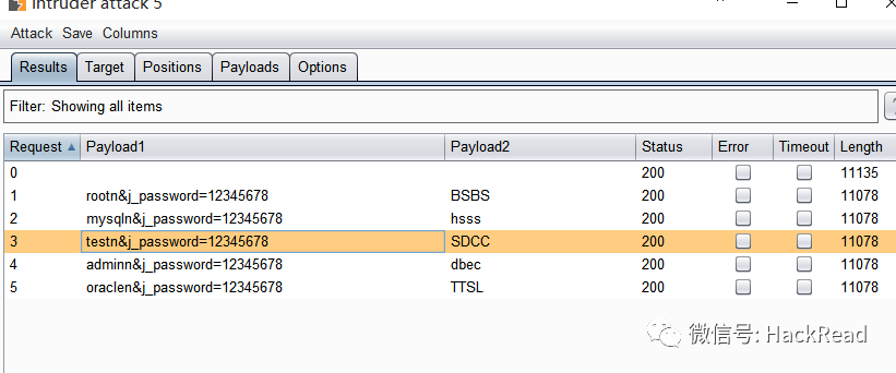 在该例子中,即 position 1为用户名,postion 3为密码。