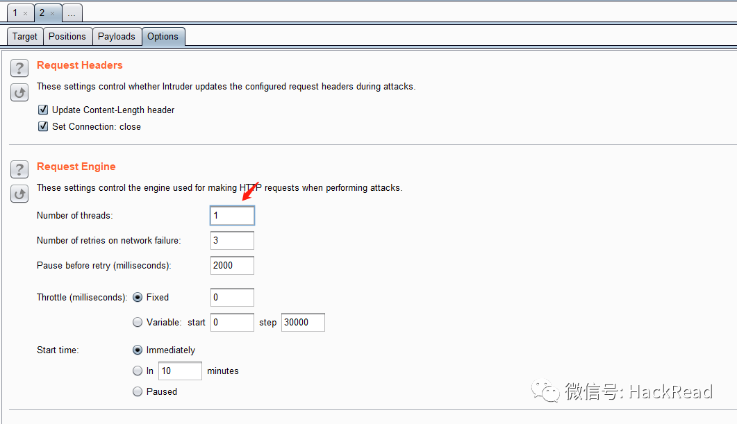 Attack type处选择 Pitchfork,在http头部位置插入xiapao:验证码的URL地址