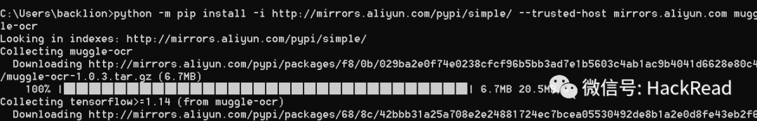 python3 -m pip install -i http://mirrors.aliyun.com/pypi/simple/ –trusted-host mirrors.aliyun.com muggle-ocr