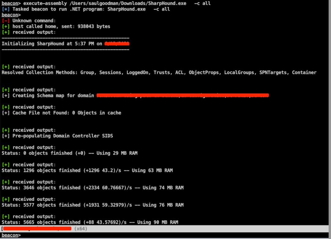execute-assembly /Users/saulgoodman/Downloads/SharpHound.exe -c all