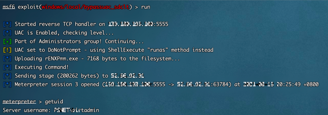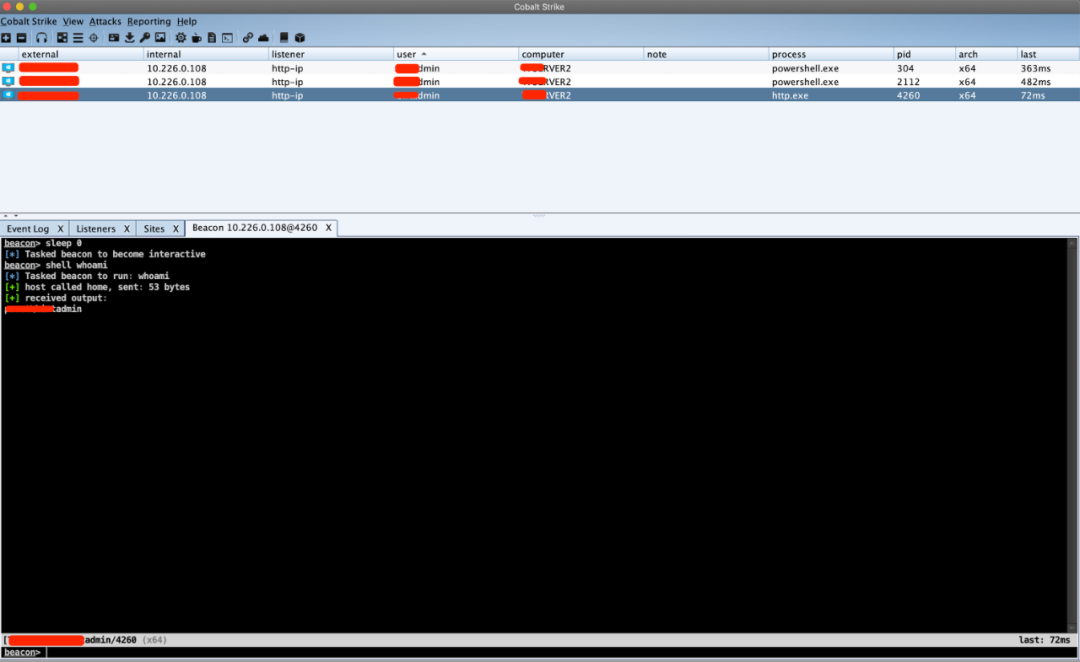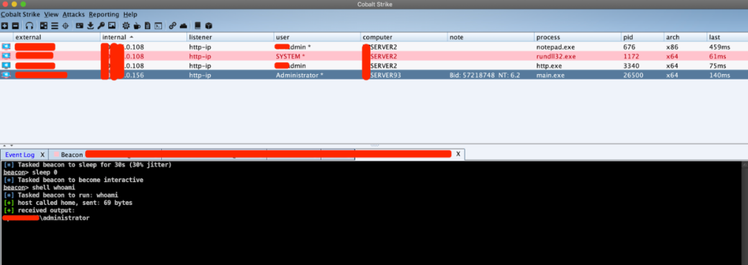 最后利用 SYSYEM 身份的把 shell 传到 Cobaltstrike: