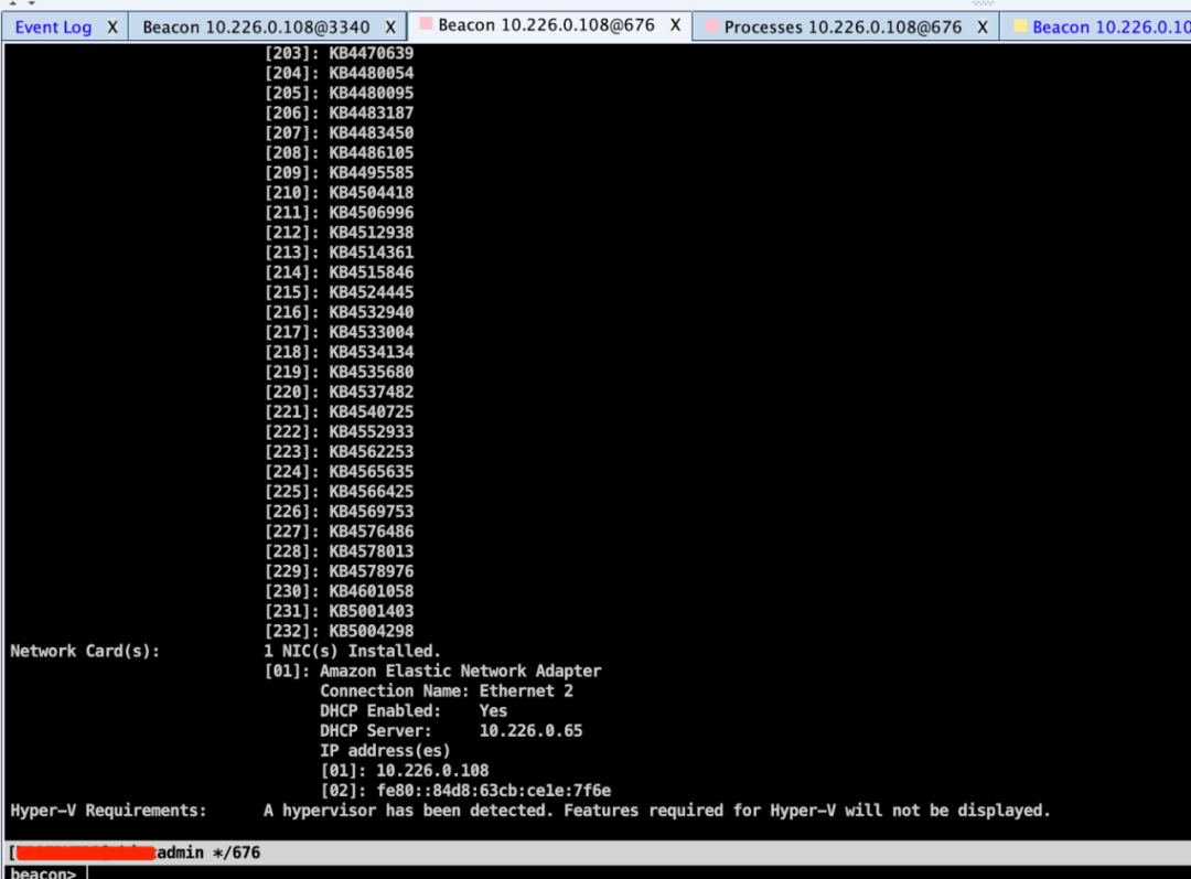 上线之后通过信息搜集发现有几百个补丁,通过已知漏洞提权无果: