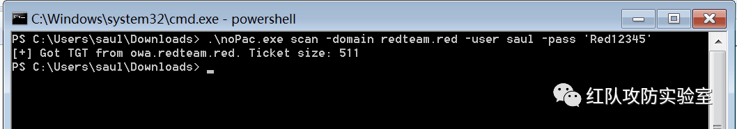 .noPac.exe scan -domain redteam.red -user saul -pass 'Red12345'